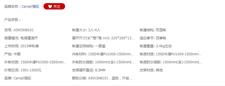骆驼户外全自动帐篷3-4人 野外露营防雨双层 休闲帐篷套装